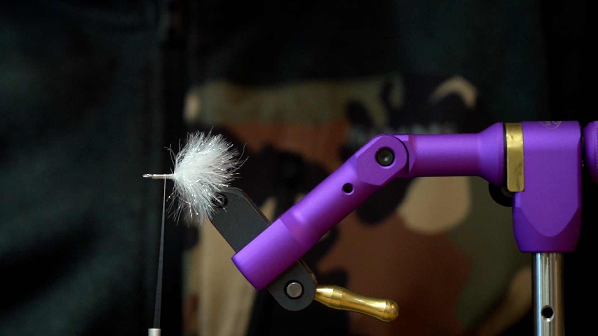 Step 8: Cut off several bundles of craft fur and hand stack them together so the tips are somewhat aligned. Lay on top of the hook reverse style with the tips pointing forward and distribute the material evenly 360 degrees around the hook. You'll want to leave a fair amount of the butts on the craft fur as it will serve as a nice support for the longer fibers when you pull them backwards into place. Pull the fibers backwards and secure with thread wraps creating what is known as a "bullet tie"
